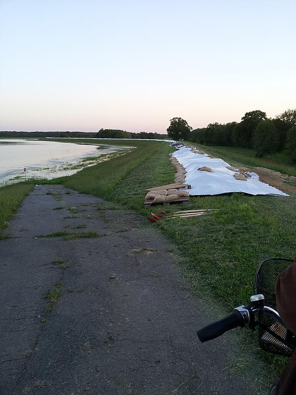 Die Vorbereitungen sind rechtzeitig angelaufen, jetzt sind sie mit schwerem Gerät unterwegs alles richtig zu verteilen, deshalb ist das Fahrradfahren momentan nicht mehr erlaubt... zur Fuß darf man noch so ein bisschen, wenn man den Einsatzleiter der Feuerwehr persönlich kennt (der Vermieter der Halle