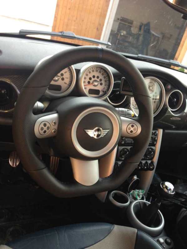 Neues Lenkrad aufgepolstert und abgeflacht mit blauer 12h makierung