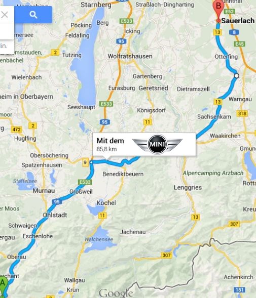 Wir werden von uns aus Landstraße in Richtung Garmisch reisen! Sicher aber zügig sag ich mal