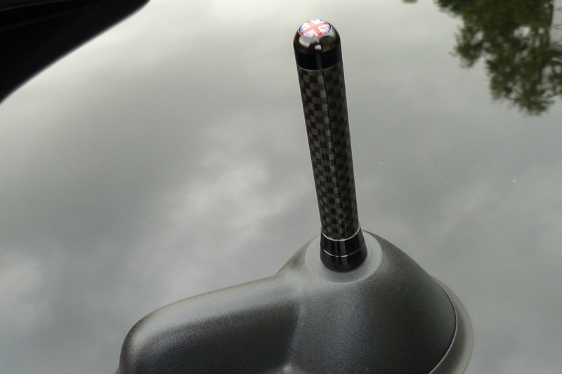Kurz vor Abfahrt habe ich noch die ewig lange Antenne durch ein kleineres Pendant in Carbonoptik getauscht. Trotz Union Jack wurde sie mir nicht geklaut