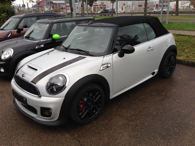 Ich war eben bei meinem Händler um die Papiere für die Inzahlungnahme meines Audis vorbei zu bringen und konnte dabei schon einen Blick auf den JCW werfen: