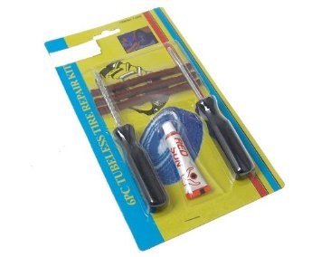 Ein Kollege und ich haben uns beim Amazonas ein Reifenreparatur Set geholt. Aufrauhen, Kleber drauf, einziehen, drehen, rausziehen, Luft drauf, überstehendes Material abschneiden und gut ist.