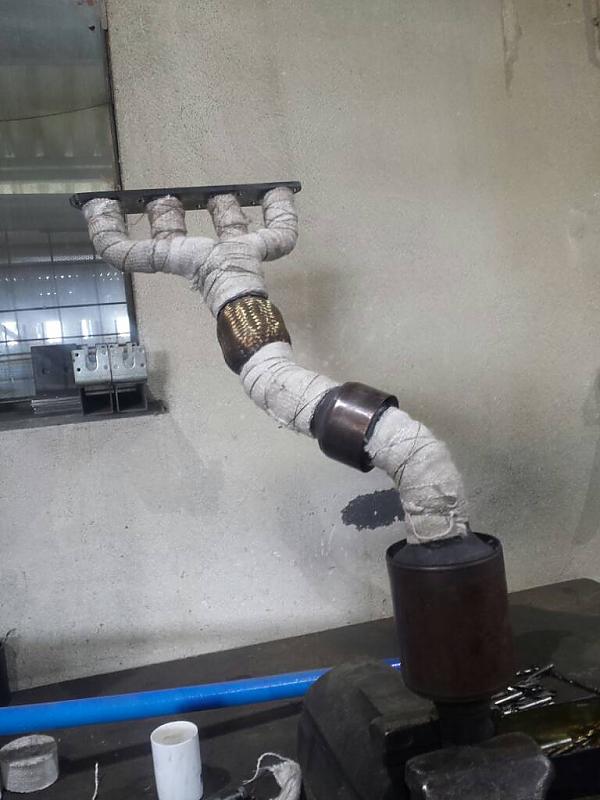 Gestern mal den Krümmer mit Hitzeschutzband eingewickelt, damit weniger Hitze in den Motorraum kommt.