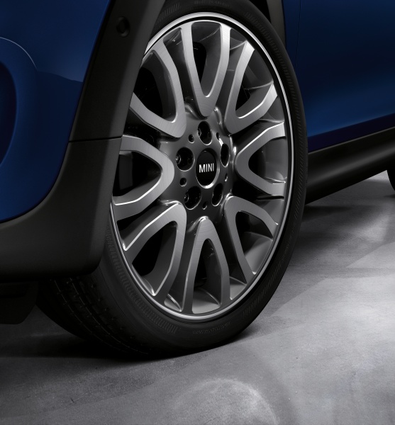 Auch die Auswahl der optional verfügbaren Leichtmetallräder wird um jeweils modellspezifische Angebote von MINI Yours ergänzt. Sowohl die sportive als auch die exklusive Note im Erscheinungsbild des neuen MINI 3-Türer und des neuen MINI 5-Türer wird durch die 18 Zoll großen MINI Yours Leichtmetallräder im Design Vanity Spoke 2-tone unterstrichen. Das Design der Räder wurde von der Anmutung eines hochwertigen Chronographen inspiriert, der Präzision und klassische Eleganz verkörpert. Bei den neuen MINI Yours Leichtmetallrädern entsteht eine zeitlos elegante Ausstrahlung durch die Kombination der blanken Aluminiumflächen mit den Felgeninnenseiten in der Farbe Spectra Grey. Zum Ausstattungsumfang der MINI Yours Leichtmetallräder für den neuen MINI 3-Türer und den neuen MINI 5-Türer gehören außerdem Reifen mit Notlaufeigenschaften.