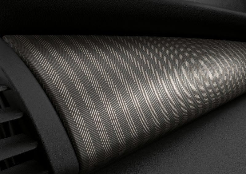 Traditionelle Fertigungsverfahren der Textilindustrie standen Pate bei der Gestaltung des MINI Yours Interior Style Fibre Alloy. Die Dekorleiste aus Aluminium weist ein vertikales Fischgrätmuster auf, das britischem Tweedstoff nachempfunden ist und mit Hilfe einer speziellen Walztechnik eingeprägt wird. Sie wird mit Dekorringen und Türellipsen in Dark Silver kombiniert.