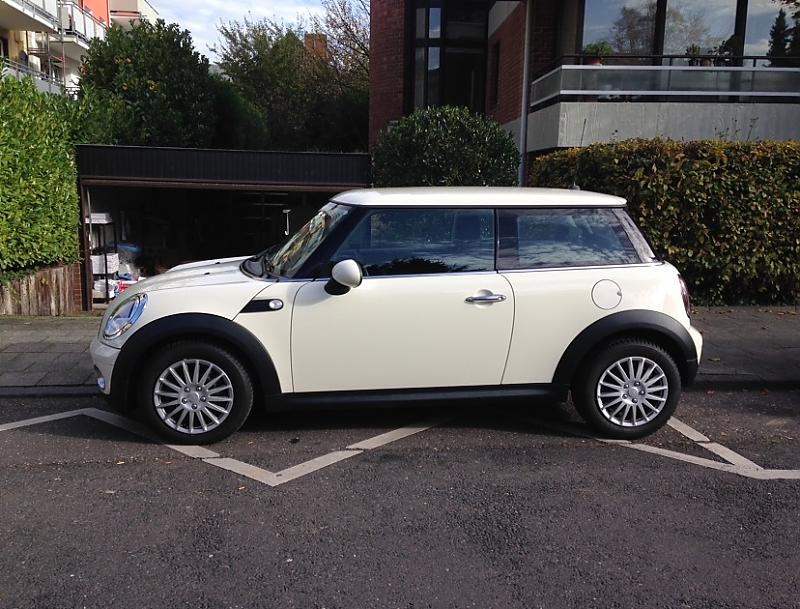 Bin überglücklich damit, schwärme immerhin schon seit 4 Jahren von Mini! Im Sommer möchte ich mir die hinteren Scheiben verdunkeln lassen sowie ein paar schicke Schwarze 17Zoll Felgen aufziehen. Auch über eine nachgerüstete Einparkhilfe habe ich nachgedacht... Steht in der Prioritätenreihenfolge jedoch hinten an. Wie man auf dem Foto sehen kann ist noch alles im Originalzustand.