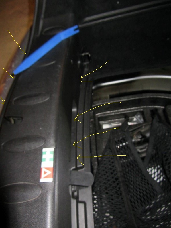 Erst die Kofferraum Plastikblende abmontieren, 3 Schrauben und 4 Klips. Bild 2