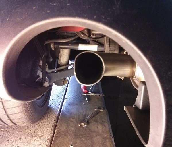 Also alles wieder runter und versucht mit dem Hammer rund zu bekommen, aber vergeblich. Das Rohr hatte scheinbar den selben Durchmesser als das Endrohr, also wie soll das drüber passen...