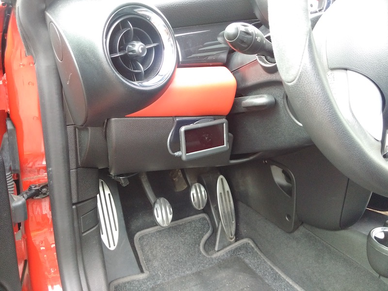...und der richtige Montageplatz ist auch noch nicht gefunden. Mittlerweile tendiere ich dazu, es entweder links neben den Drehzahlmesser oder in die Mittelkonsole zu verlegen. Der provisorische Platz ist definitiv nicht das Gelbe vom Ei.
