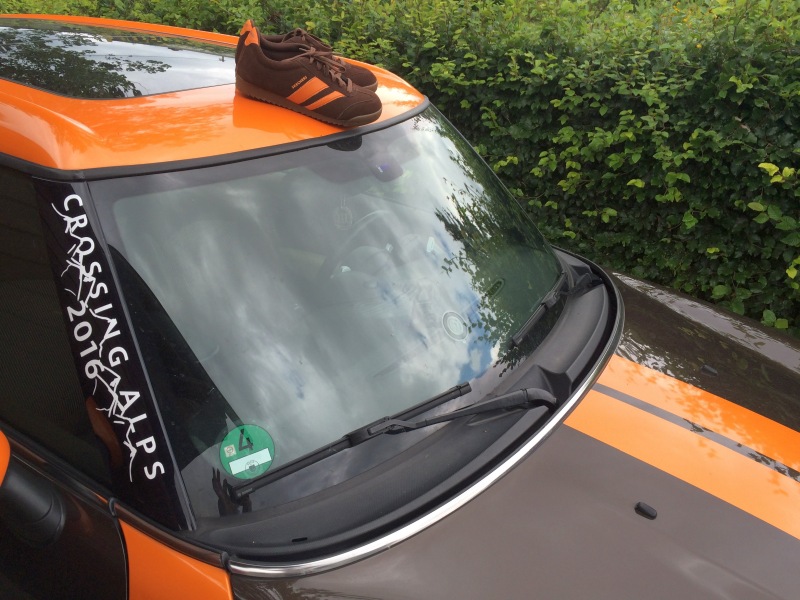 So, ich hab mich dann mal auch Schuh-technisch an den MINI angepasst und bin startklar. Sonne