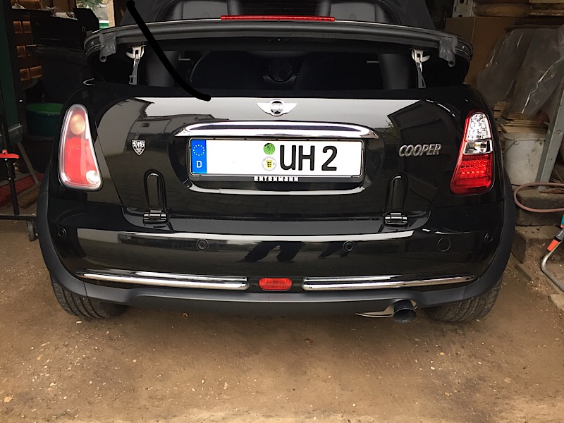 Zum Einbau... beim normalen Cooper geht’s bestimmt relativ einfach wie das Einbau-Video ja auch zeigt. Beim Cooper Cabrio ist es um einiges schwieriger, da es nur kleine Aussparungen zum Kotflügel-Innenleben und somit auch zur Rückleuchtenbefestigung hat. Auf der linken Seite ist dann auch noch (als ob es nicht schon eng genug zugehen würde) der Verdeck-Motor im Weg.