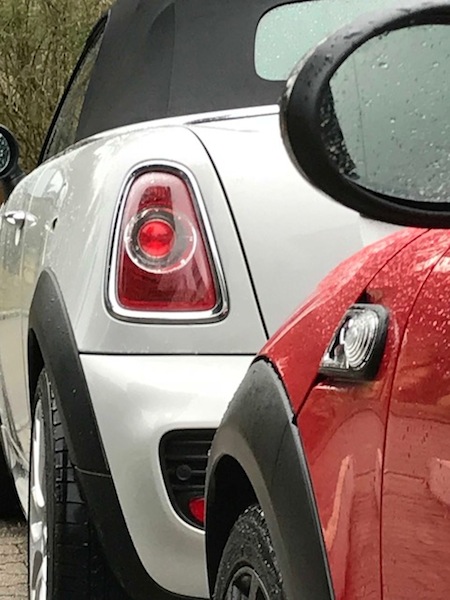 auf die A5 am Frankfurt vorbei) waren sehr un-roadsterisch bei teilweise stromenden Regen gefahren. Wir kamen erstaunlich schnell durch (betonung auf "schnell" - zwischen 130 und 200 Kmh) und waren wieder begeistert von die Eigenschaften von R56 Baureihe Cooper S. Auto fährt logischeweise sehr ähnlich wie unsere Coupe, aber es war unsere ersten Mal im Regen ordentlich unterwegs. Da sind die relativ schmalen 205er Mini Reifen ein Plus.
