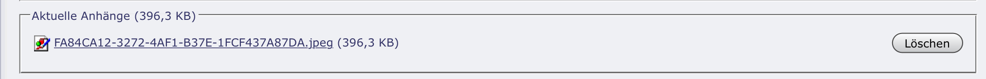 Unter „Aktuelle Anhänge“ wird nun ein Link zum hochgeladenen Bild angezeigt: