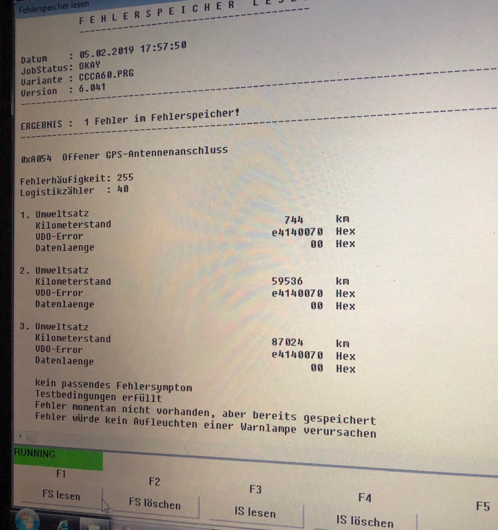 Hi, da unser Navi einen falschen Standort anzeigt habe ich heute den Fehlerspeicher ausgelesen.