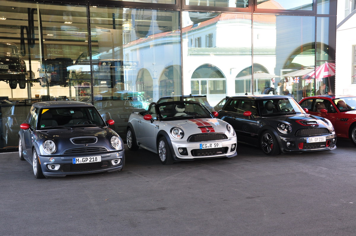 Vor der Fassade und im vorderen Bereich parkten hauptsächlich Mini und eine handvoll MINI, auf dem anschließenden Parkplatz viele BMW und diverse Fabrikate. Damit Ihr Euch einen Gesamteindruck davon machen könnt, sind auch Fotos von diesen am Schluß.