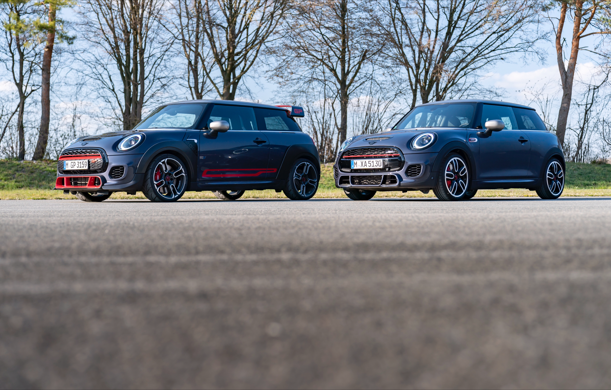 Der MINI John Cooper Works (Kraftstoffverbrauch kombiniert: 7,1 – 6,9 l/100 km; CO2-Emissionen kombiniert: 162 – 157 g/km) ist der Inbegriff für extremen Fahrspaß im Premium-Segment der Kleinwagen. Übertroffen wird er in seiner begeisternd sportlichen Charakteristik nur von einer echten Rarität: dem neuen MINI John Cooper Works GP (Kraftstoffverbrauch kombiniert: 7,3 l/100 km; CO2-Emissionen kombiniert: 167 g/km). Er bringt das volle Potenzial seiner Antriebs- und Fahrwerkstechnik vor allem auf der Rennstrecke zur Geltung. Jetzt lässt sich die faszinierende Ausstrahlung des in einer Kleinserie von nur 3 000 Exemplaren gefertigten Modells auch auf den Alltagsverkehr im MINI John Cooper Works übertragen. Für ihn wird von Juli 2020 an ab Werk das John Cooper Works GP Paket angeboten, das mit exklusiven Design- und Ausstattungsmerkmalen unverfälschtes Rennstrecken-Flair auf die Straße bringt.