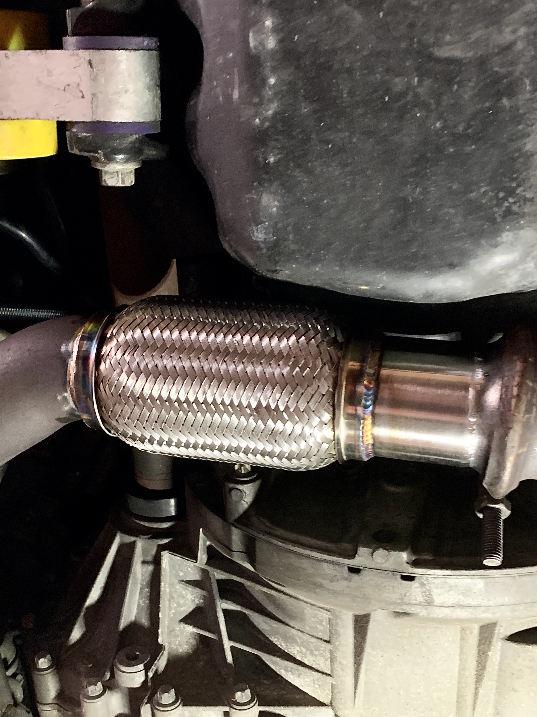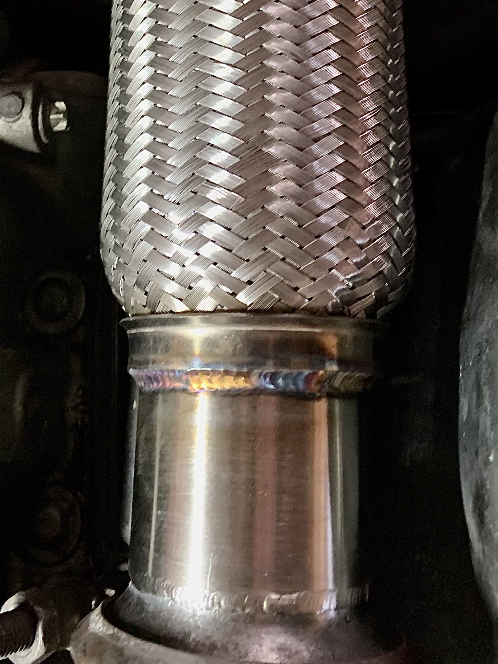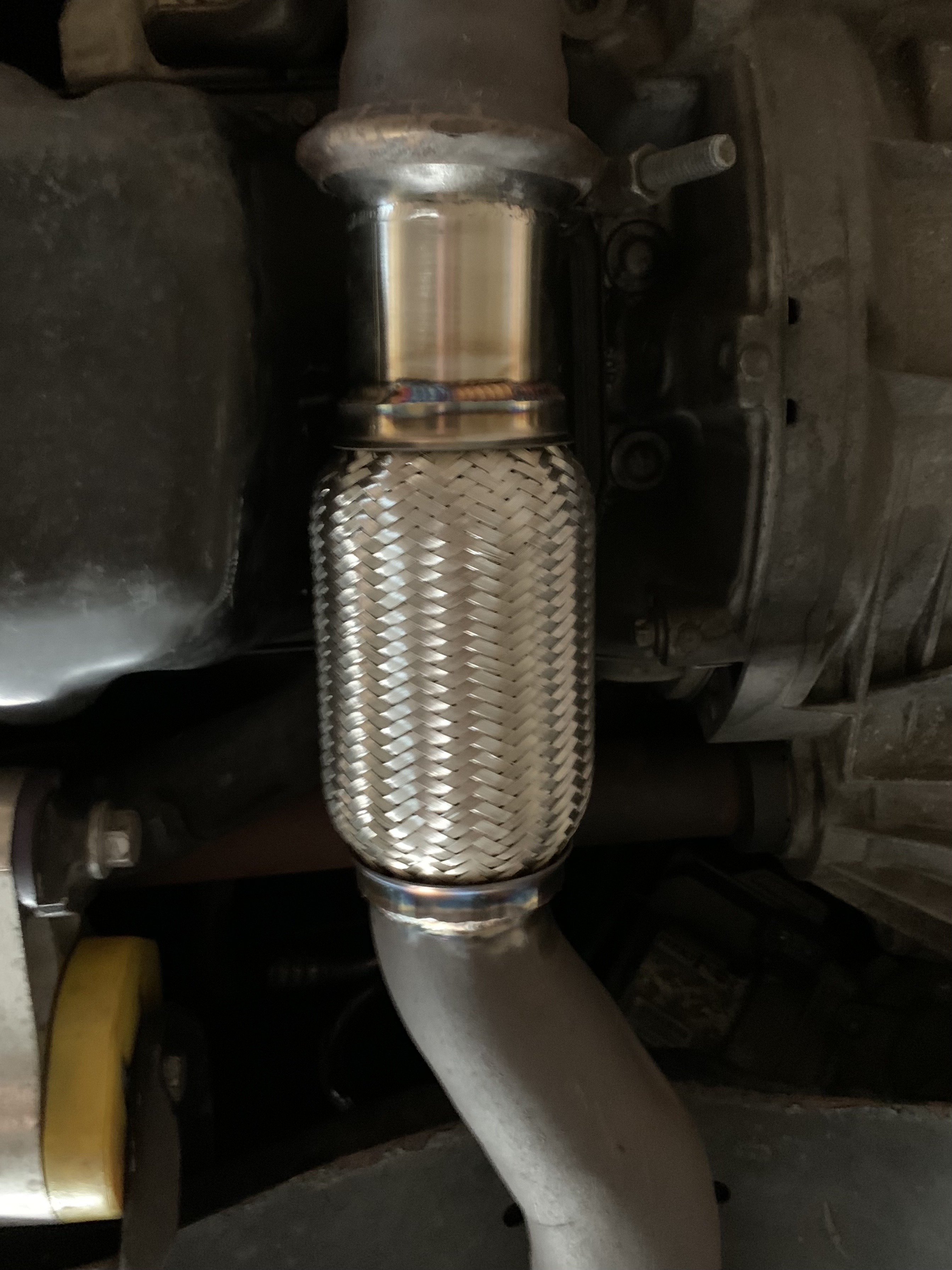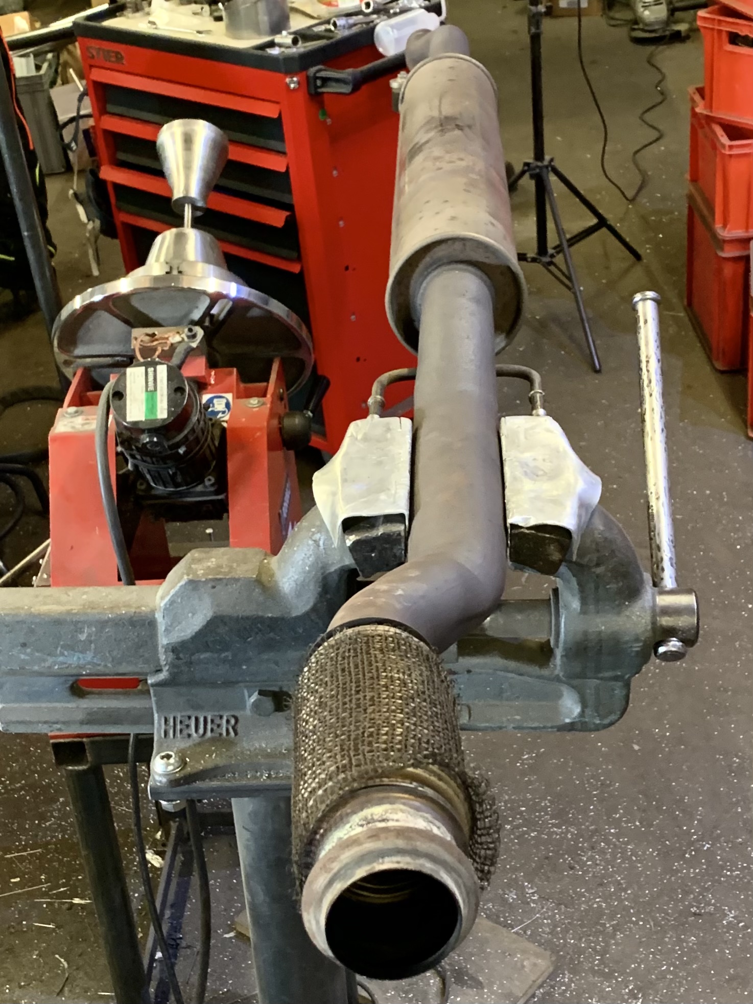 Bin mal derbe aufgesetzt (am Airport, Jumbo im Landeanflug auf mich zu, ich fasziniert rechts ran & dabei ein großes Loch am Fahrbahnrand übersehen), dabei riss die netzartige Ummantelung ein & das Flexrohr an sich, hat einen kleinen Dötsch mitbekommen. War zwar alles dicht und hatte auch so keine weiteren Auswirkungen, außer dass es scheiXXe aussah, doch so sollte es nicht bleiben.