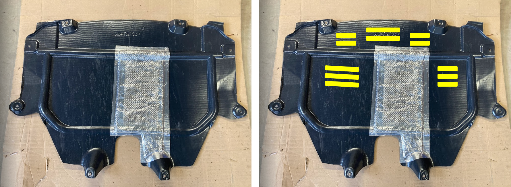 Was denkt ihr... bin gerade am überlegen, vorne und seitlich neben der Matte noch Schlitze (gelb) rein zu machen damit etwas Luft zirkulieren kann.