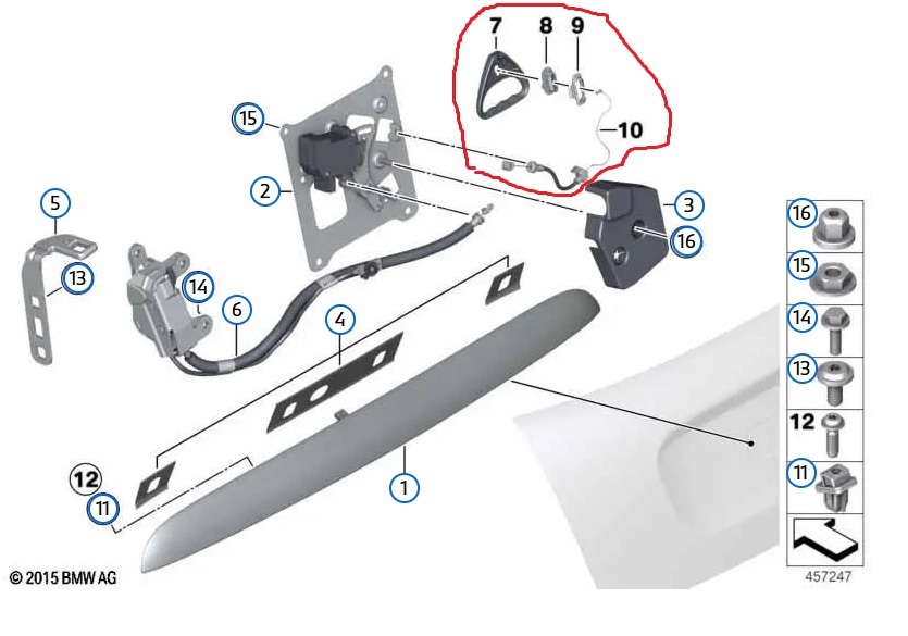 Hab mal eben geschaut und das Requirement gilt wohl nur für abgetrennte Kofferräume. Das hat der Clubman ja nicht. Das erklärt, warum im ETK nix zu finden ist. Unten mal die Schaubilder R55 vs R57. Da sieht man die benötigten Teile.
