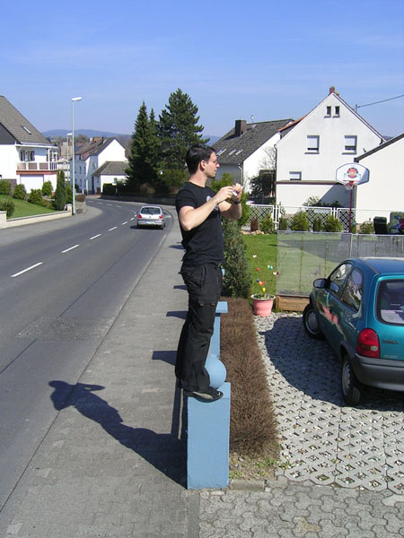 und hat sich auf die Mauer gestellt