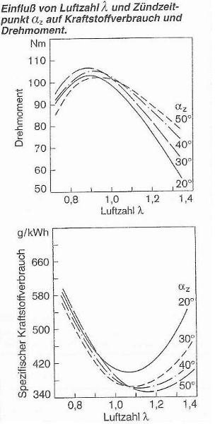 Leistung, spezifischen Verbrauch und Emission (HC,CO) betreibst
