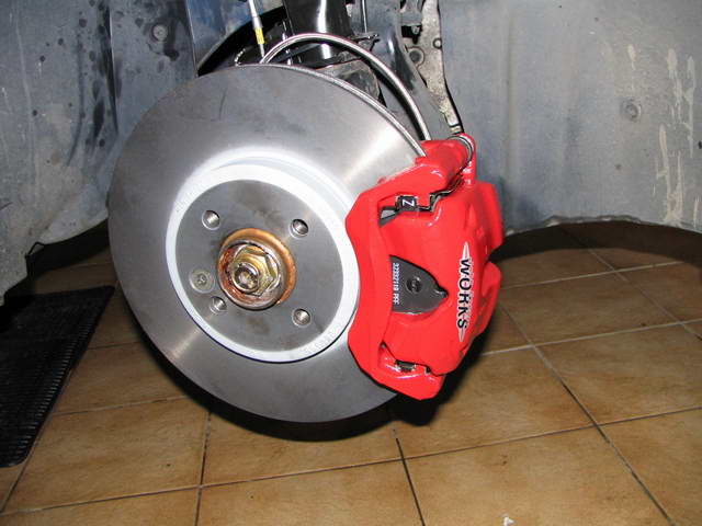 Dazwischen hat Erich (Rich) mit bescheidener Unterstützung von mir (darf ja leider nix schweres heben und mich noch nicht anstrengen) ein komplettes Works-FW und eine Worksbremse eingebaut. Und das ganz ohne Hebebühne, wir haben nur 3 fahrbare Wagenheber und 2 "Böcke" zur Verfügung gehabt.