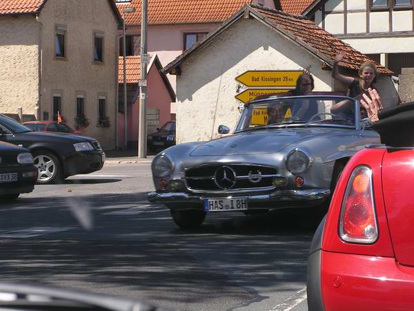 Unterwegs sind wir einer Kolonne Oldtimer begegnet, ein paar dutzend Fahrzeuge, die hatten da ein Treffen und waren auch auf Ausfahrt. Die haben gewinkt, gehupt und gestrahlt, voll bekloppt, das war so