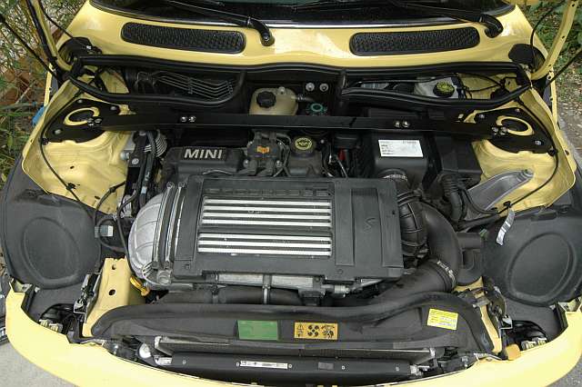 so leute, mein mini hat am montag beim fastbox ohne beanstandungen das pickerl bis 04/2008 bekommen und heute hatte ich endlich zeit, die m7 domstrebe einzubauen.
