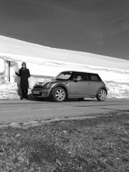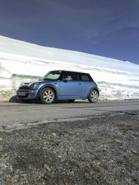 das weiße hinterm mini is schnee. der war teilweise über 2meter hoch und die straße wurde dort ausgefräst. sah super aus leider hatten wir nur handys zum fotographieren mit. die handy fotos sind auch nocht verkleinert also entschuldigt die quali.