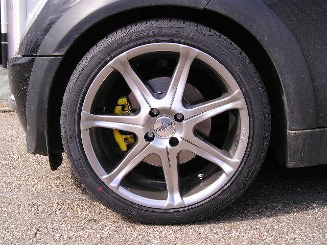 Es Handelt sich hier um eine 7,5x17 Zoll Felge mit 215/40ZR17 Pirelli P Zero Nero und einem Mini mit H&R (-30mm)!