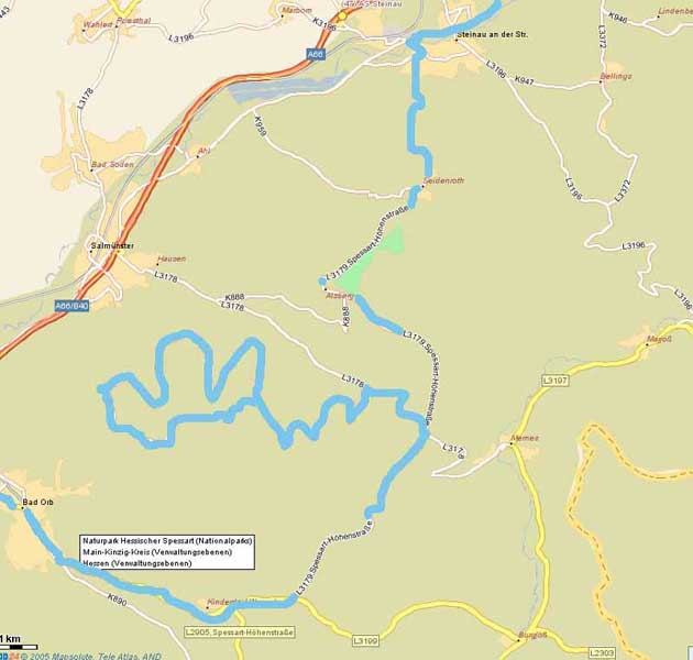 Ich werde aber sicher nicht von Anfang an mitfahren, weil ich ja von der anderen Seite her komme und das wär schon arg weit, sondern würde gerne irgendwo nach Schlüchtern zu euch stoßen, ich such mir da mal was günstiges aus. Ich würde dann ab Staatsbad Bad Brückenau übernehmen, das ist etwas vor Bad Brückenau, da müssen wir dann nicht mehr reinfahren.