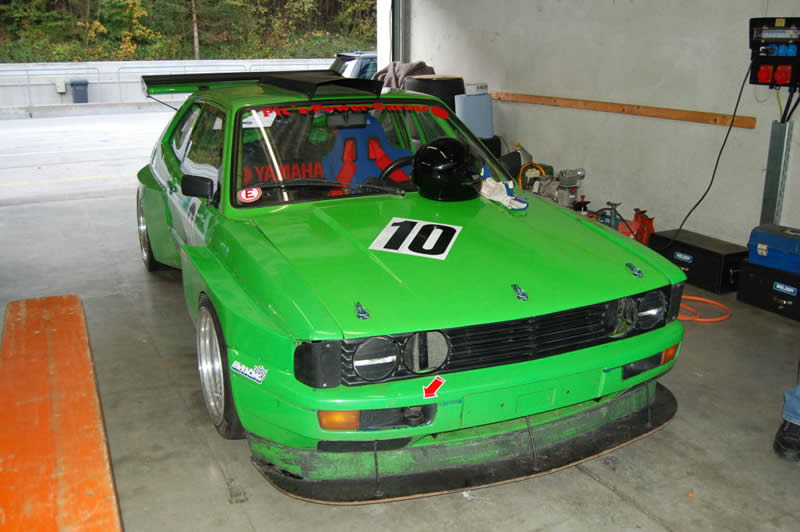 Tja, nicht überall, wo Scirocco draufsteht, ist VW drin. In diesem Fall wurde die Hinterachse des 70er Jahre Kultmobils von einer Kette angetrieben. Folgte man mit seinem Blick den Kettengliedern, staunte man nicht schlecht, als man direkt hinter dem Fahrersitz zwei gekoppelte Yamaha R1 Motoren fand (für die Nicht-Motorradkenner: Wir reden hier von 2x 1.000ccm mit mindestens 150PS pro Motor bei weit über 10.000U/min. Wißt Ihr, wie geil das klingt?). Geschaltet wurden die beiden separaten Getriebe über ein Schaltgestänge und Gas gegeben über ein Gaspedal. Doch genau da lag das Problem: Die Synchronisation war nicht zu 100% perfekt. Das Resultat: Ein Motor „schob“, einer „zog“. Die Folge: Ein Motor platzte spektakulär und legte eine vortreffliche Ölspur