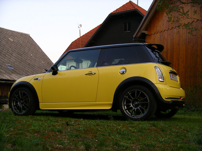 Mini Cooper S 05, Liquid Yellow/Black, Chili, Navi, GSSD, H/K, 18" Hartge, JCW: (Aerokit, Sitze, Leder Interieurleisten + Downtubes, Lenkrad) GP Dachspoiler... http://www.mini-klub.com