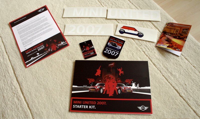 Das ganze Kit mit Aufkleber, Patch zum Aufbügeln, Anschreiben, Amsterdam-Führer und Zugangs-Badge zum Gelände.