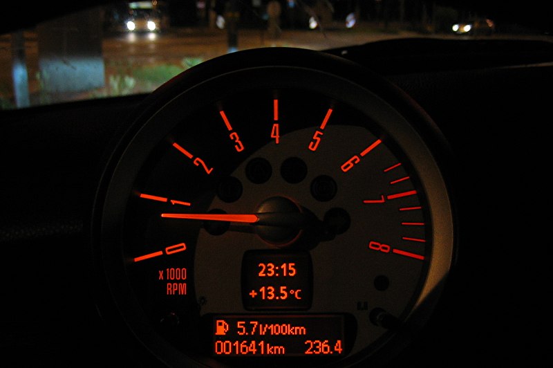 Spaß hat es nicht gemacht, aber der R56 CooperS hat sich gerade mal 6l Super gegönnt.