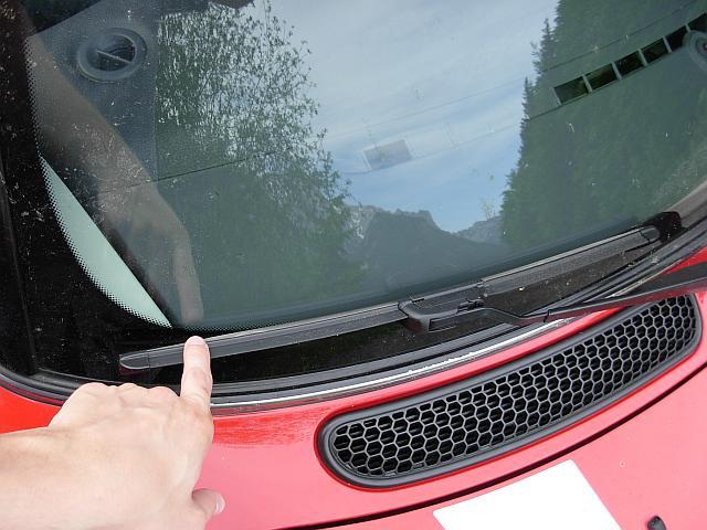 Und hier ein paar neue Fotos mit den Bosch Aerotwins. Dort wo der Finger ist, liegt der Wischer (auf der Beifahrerseite) nicht mehr auf, aber das macht ja nix!
