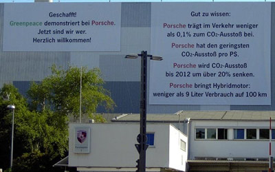 Greenpeace demonstriert bei Porsche. Und Porsche zeigt Humor.