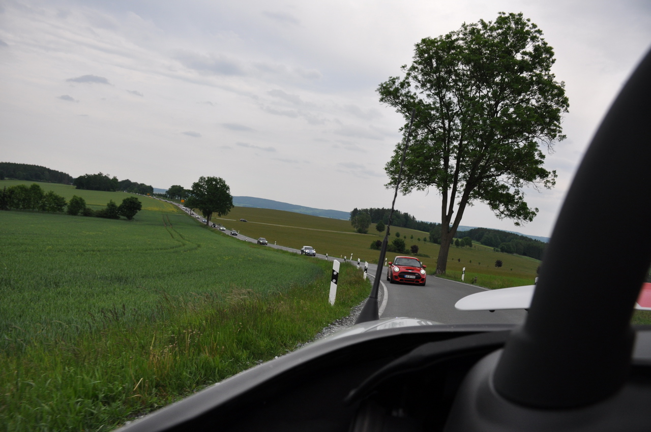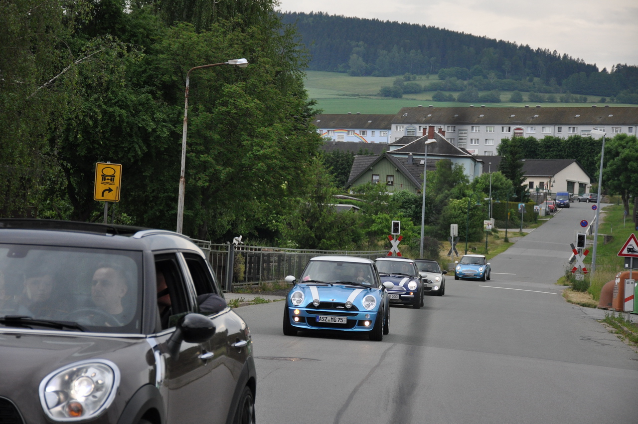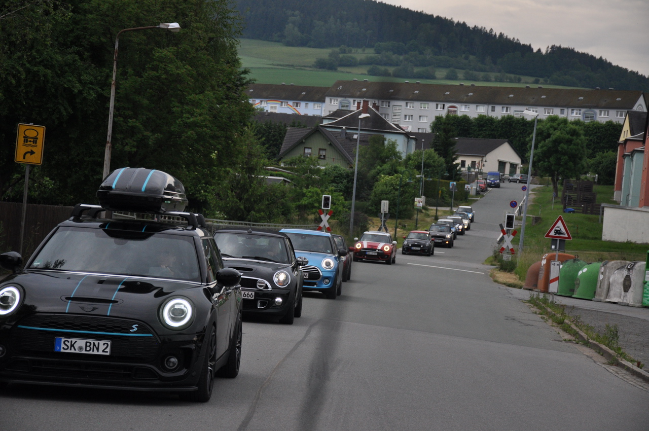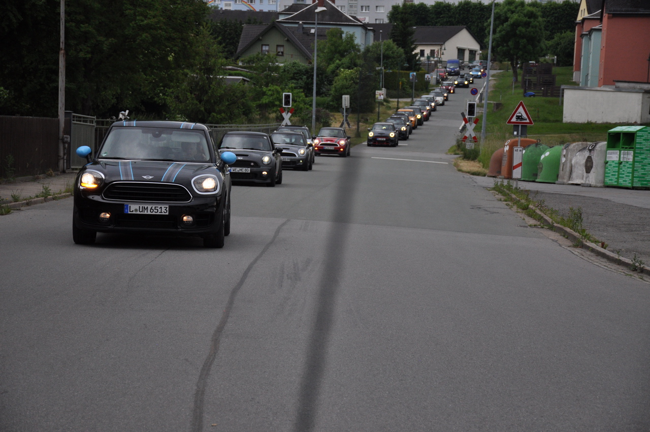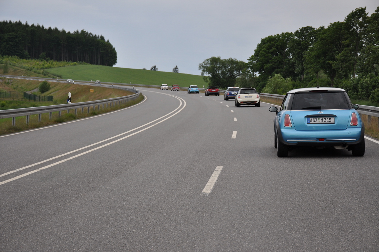 Zwei Vorbeifahrten der Kolonne gibt's auch als Videos, einstweilen nur mal auf der Facebookseite von MINI².info https://www.facebook.com/MINI2.info