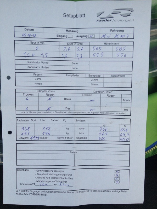 The Stig schrieb:Mein MINI wog mit 30L Sprit an Bord 1208Kg auf der Radlastwaage bei Schirra MotoringPfeifen Mit den am Donnerstag kommenden Pole Positions werden es dann nochmal insg 10Kg weniger sein. Somit dann 1198Kg.