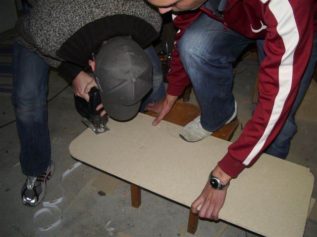 Haben nen wunderschönen doppelten boden gebastelt inkl. ausschnitt für plexiglasscheibe, platz gemacht für den kühler und auch noch die geilen weissen rückleuchten eingebaut!