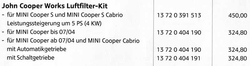 Auch bei niedrigeren Drehzahlen klingt der JCW schon kerniger als der Serien-Luffi. Wie der Vergleich zum K&N ausfällt, vermag ich nicht zu beurteilen.
