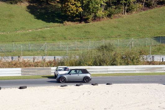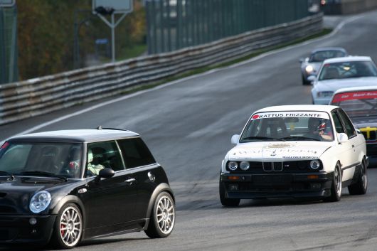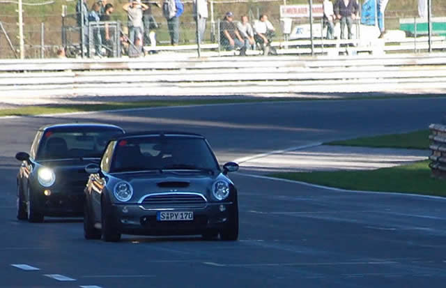 Machen wir es kurz: Keiner dieser drei Punkte traf beim ersten Lauf über die verkürzte Distanz von 10 Runden auf. Ganz im Gegenteil! Nach einem noch etwas unkoordinierten Start nach der Nocksteinkehre, kamen alle 6 MINIs hervorragend in ihren Rhythmus