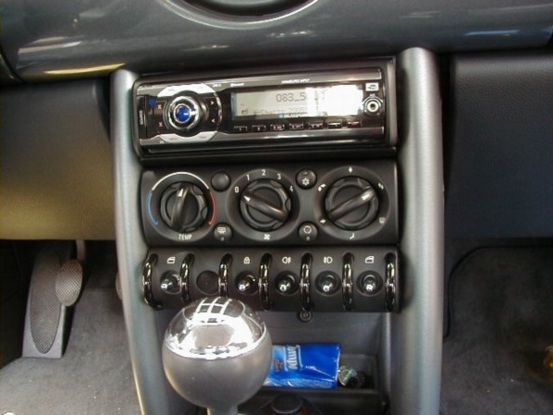 Das Mikro hat seinen Platz in der Schalterkonsole gefunden, neben dem Schalter für die Seitenscheibe auf der Fahrerseite. Der USB-Stick versteckt sich hinter der Klappe an der Unterseite der Mittelkonsole und das Radio, tja das steckt im dafür vorgesehenen Schacht Zwinkern.