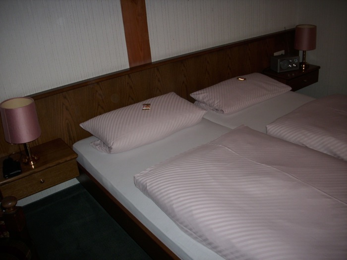 Total beeindruckt (und mit zitterndem Kupplungsfuß - scheiß Überanstrengung Oops!) ging es dann weiter Richtung Friedrichshafen in unsere Unterkunft. Besser gesagt Unterkünfte, denn wir sind jetzt kurz vor Friedrichshafen quer im Dorf verteilt. Traurig Zum einen schade, da wir auf das gemeinsame Frühstück verzichten müssen, zum anderen aber auch super, da die Vorfreude dann umso größer ist. Außerdem können Hase und ich uns nicht beklagen - in unserer rosa Honeymoon-Suite Yeah!Augenbrauen Devil!