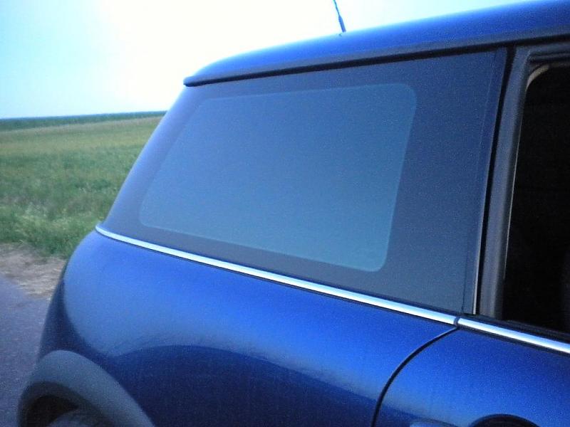 Richtig tief schwarze Scheiben stehen dem Mini gut wegen der schwarzen B- und C-Säulen. Wenn die Scheiben aber keine Tönung von Werk aus haben und man versucht nur mit Folie diesen tiefschwarzen Ton zu kriegen, zeichnen sich schonwieder Ränder ab, was ich persönlich nicht so schön finde. Wenn man Folie auf eine bereits von Werk getönte Scheibe aufträgt passiert das nicht so stark.