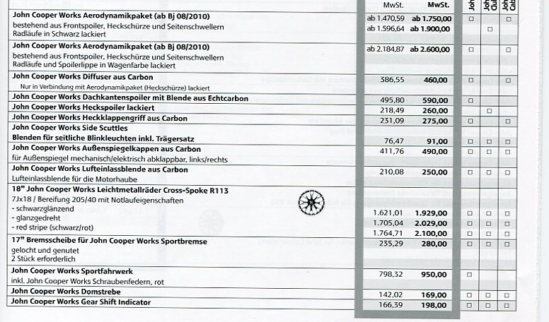 hab hier die märz preisliste vom jcw vor mir liegen