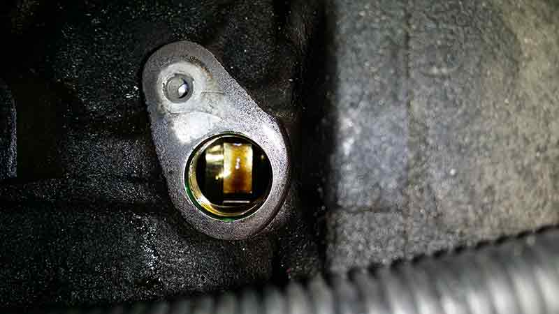 Sensor raus und jetzt sollte bei einem Blick durch die Öffnung eine Einkerbung (Bild "Steuerzeit-3) in der