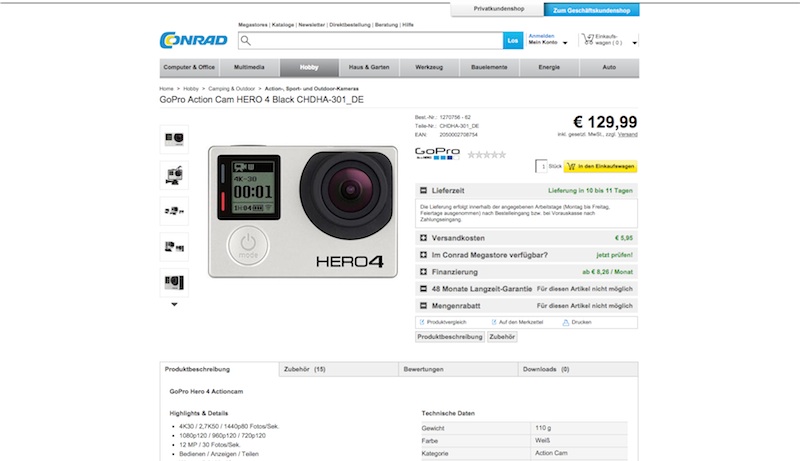 So mal nebenbei. Seit heute ist die GoPro 4 zu kaufen. Hab's zufällig im Mediamarkt gesehen. Die 4 Silver Edition ist ungefähr ne 3+ Black aber hat ein Display auf der Rückseite. Ein Kleinseins mehr Abstufungen der fps gibts auch. Kostet 379€ somit nur 10€ mehr als die 3+ Black.