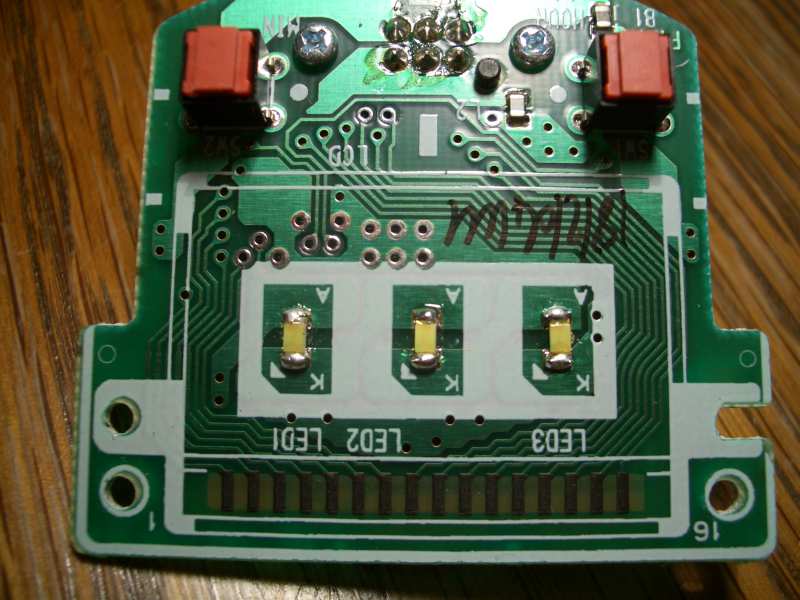 Hab jetzt das ganze nochmal auseinandergenommen und kann die Vorwiderstände trotzdem nicht finden. Hab mal zwei Bilder gemacht, vielleicht erkennt ja wer anders was.