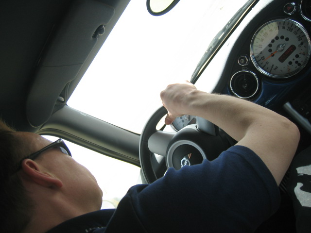 Letzte Tipps und Instruktionen von Raunos Sohn Timo.     Wie lenkt der Rallyfahrer richtig, welchen Gang benutzen wir und wann bremsen wir. Letzters geschieht NIE! Die Motorbremse reicht vollkommen aus, um die MINIs um die Pylonen zu schmeissen! Also an den Start     und VOLLGAS!     Zögerlich aufgrund der Strapazen, welche wir unserm MINI zumuteten, zogen wir unsere Runden und ließen eine leichte Wolke unsere Route markieren.     nach Turns zu zwei Runden     zogen wir mit dem Meister erste Bilanz     (an die Ducks: Salz im Winter kannst sicherlich leichter runterwaschen, aber den Sand aus jeder Spalte rauszubekommen … das würde Euch nur zur Verzweiflung bringen! Devil!)